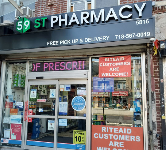 59 Street Pharmacy is conveniently located at 5816 4th Avenue Brooklyn NY. We offer Free delivery & Pickup service to customers.